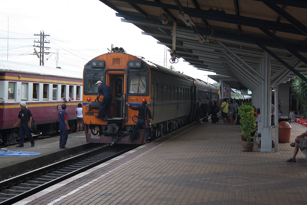 Beim APD.20 2513 als SP EXP DRC 39/41 nach Surat Thani/Yala findet am 19.Mai 2013 in der Chumphon Station der Personalwechsel statt. Karl Seltenhammer