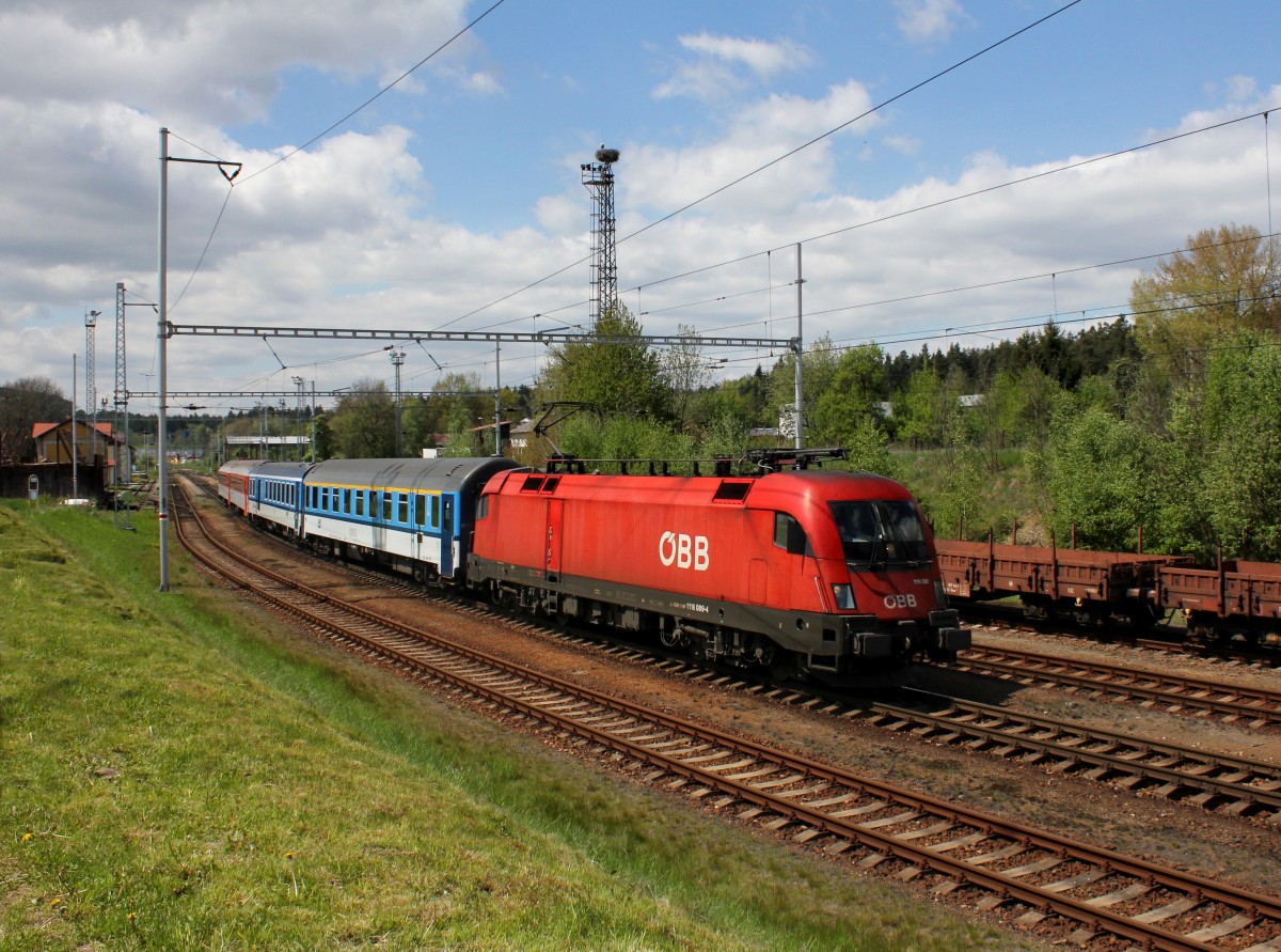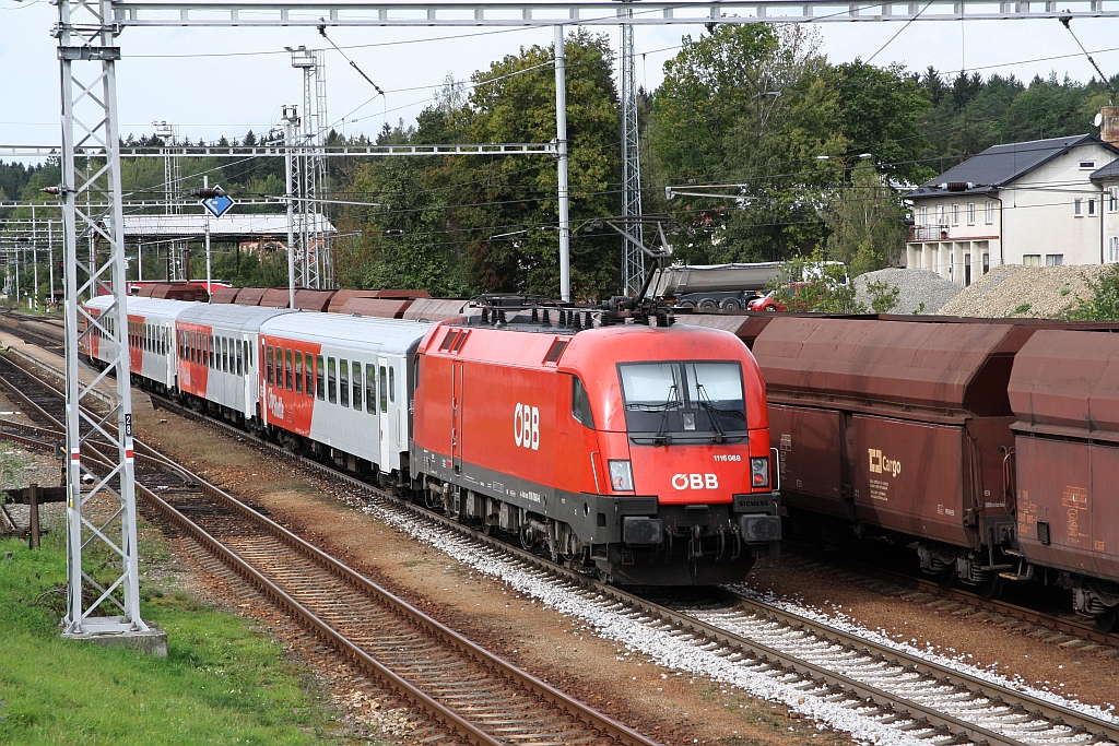 ÖBB 1116 088-6 als letztes Fahrzeug des Os 3803 "Vltava Dunaj" (Ceske Budejovice - Linz Hbf.) am 22.September 2018 im Bahnhof Kaplice. Karl Seltenhammer