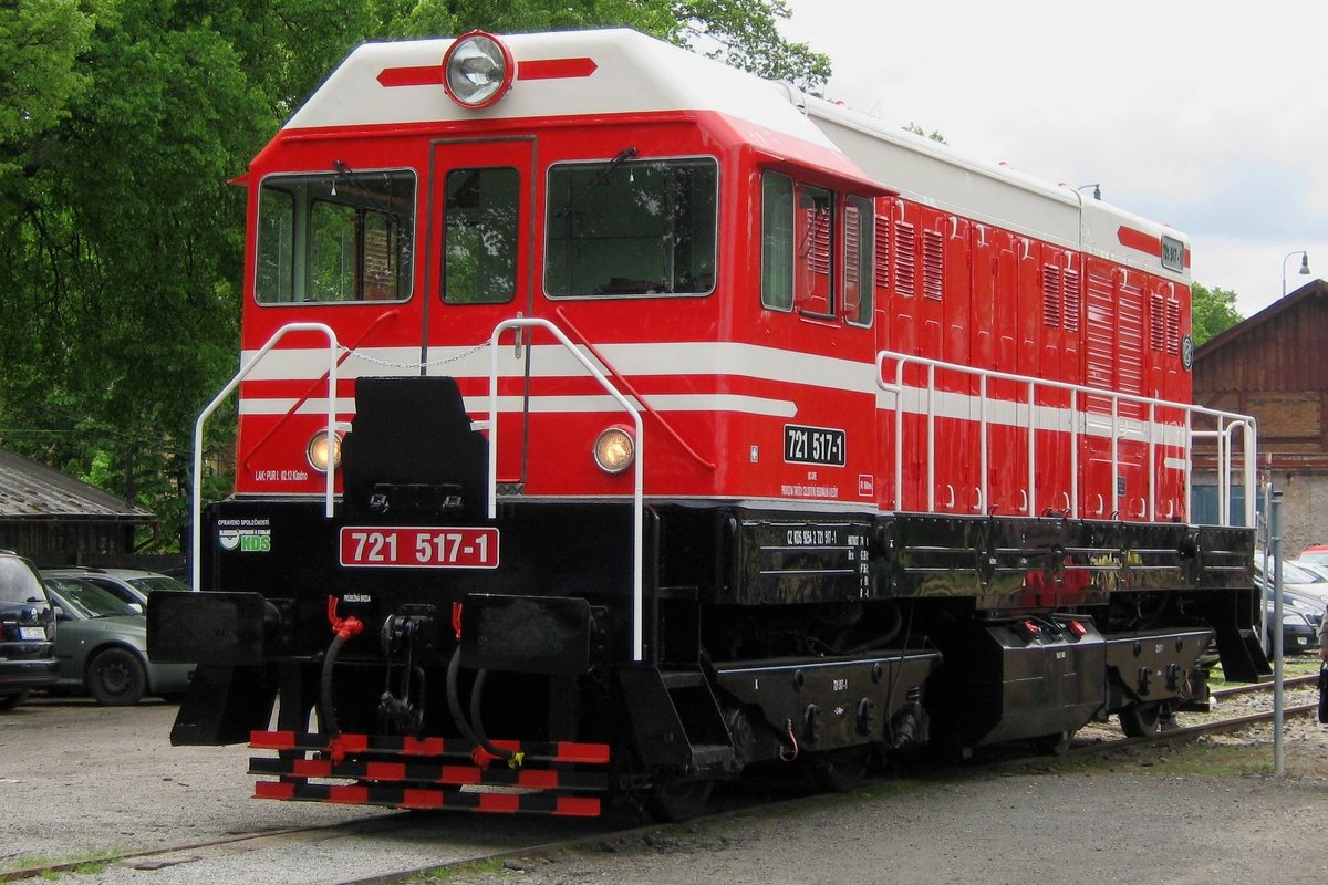 KDS hat deren Gross-Hektor 721 517 in ein alter CSD Farbenschema bemalt und dieser Lok grüsst ins Bahnhof von Luzna u Rakovnika die Gäste für das Eisenbahnmuseum am 13 Mai 2012.