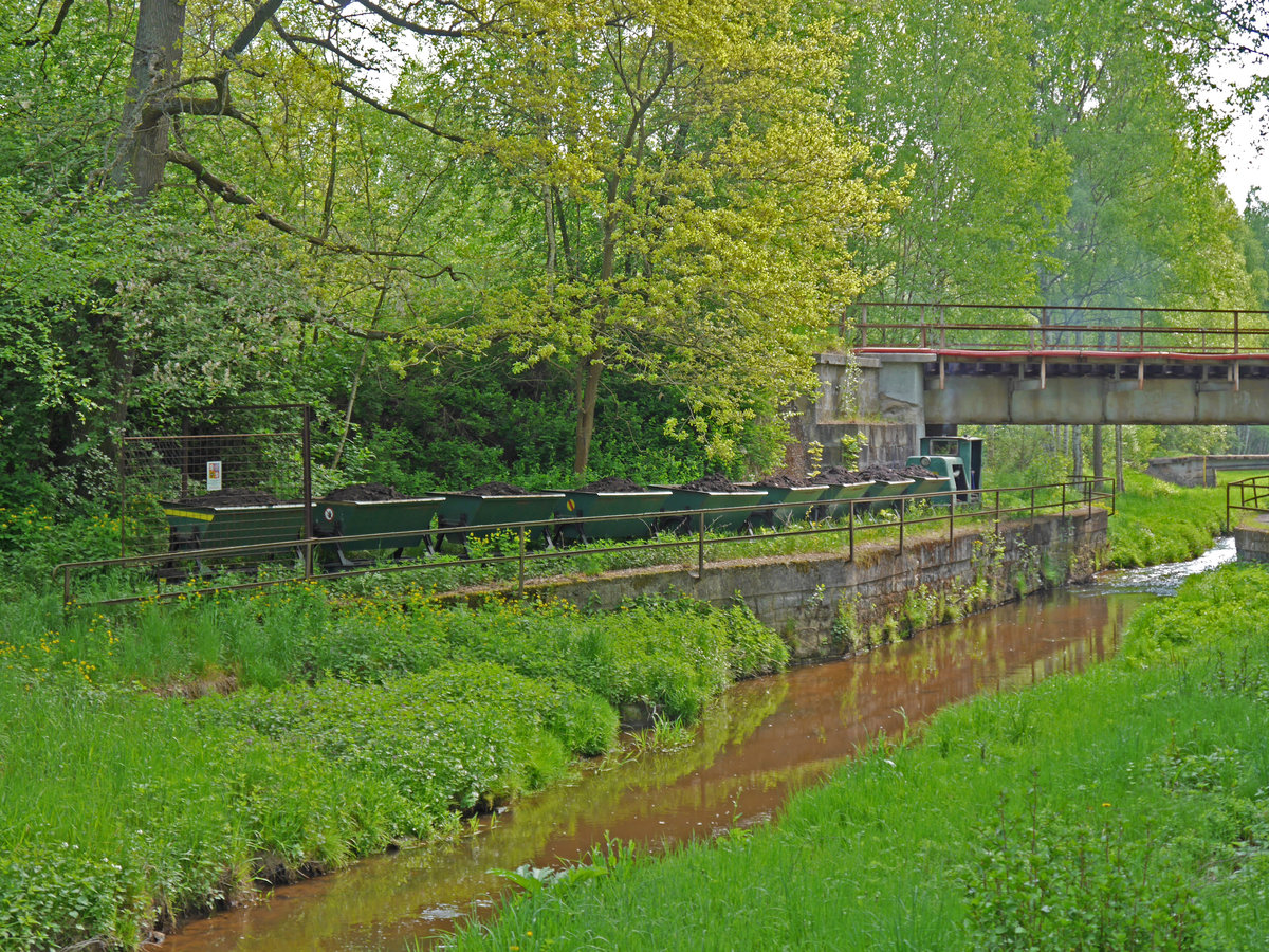 Feldbahn Franzensbad, beladener Zug auf der Fahrt ins Werk, 14.05.2015