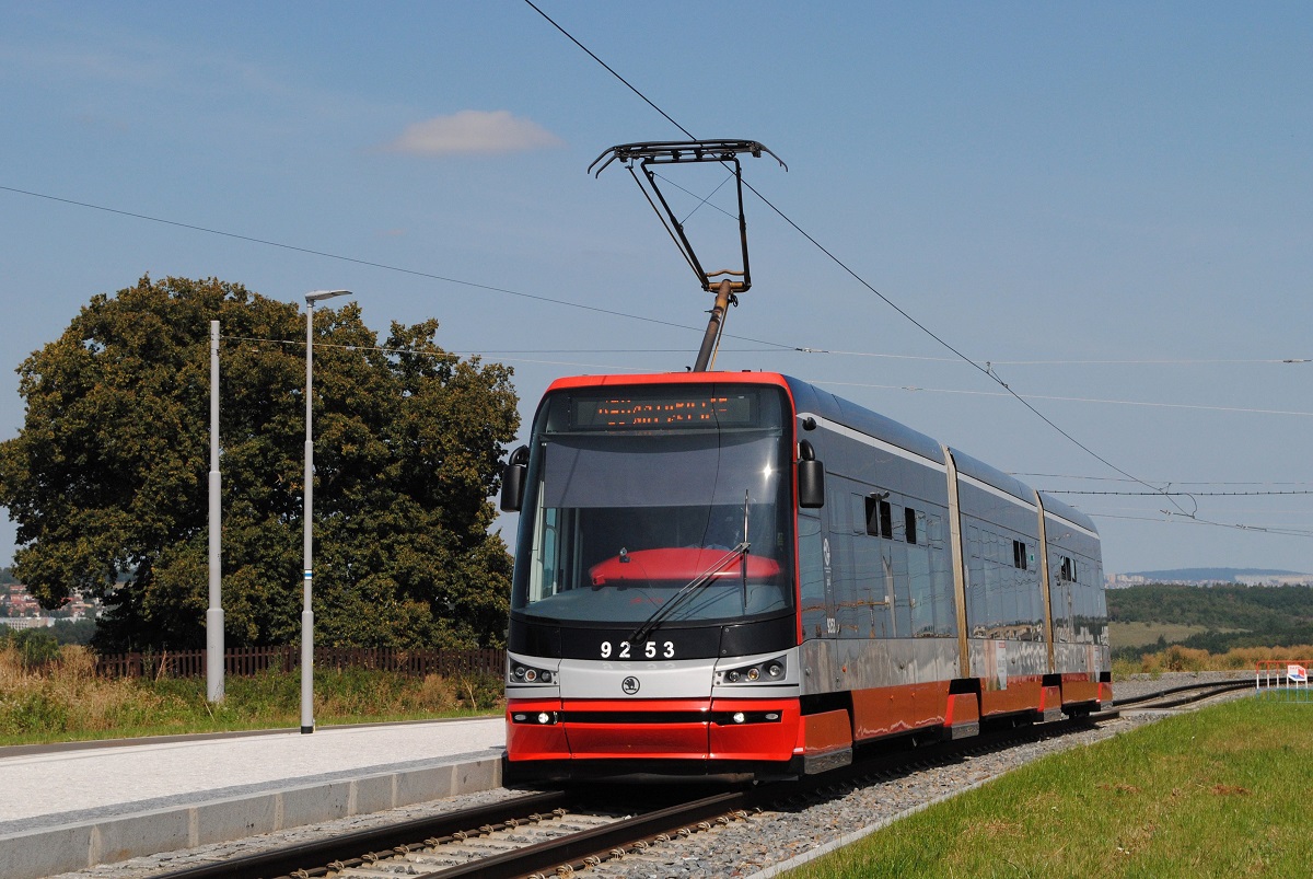 Die rund 1,6 Kilometer lange Verlängerung von Sidliste Barrandov nach Slivenec wurde im Oktober 2023 eröffnet. Die Strecke wurde mustergültig auf eigenem Gleiskörper angelegt und erschließt völlig unabhängig vom Individualverkehr die südwestlich von Barrandov liegenden Neubaugebiete Holyne und Slivenec. Tw.9253 hat soeben den Ankunftsbahnsteig der neuen Endstelle Slivenec ereeicht. (27.08.2024) Erwin Schidlofski