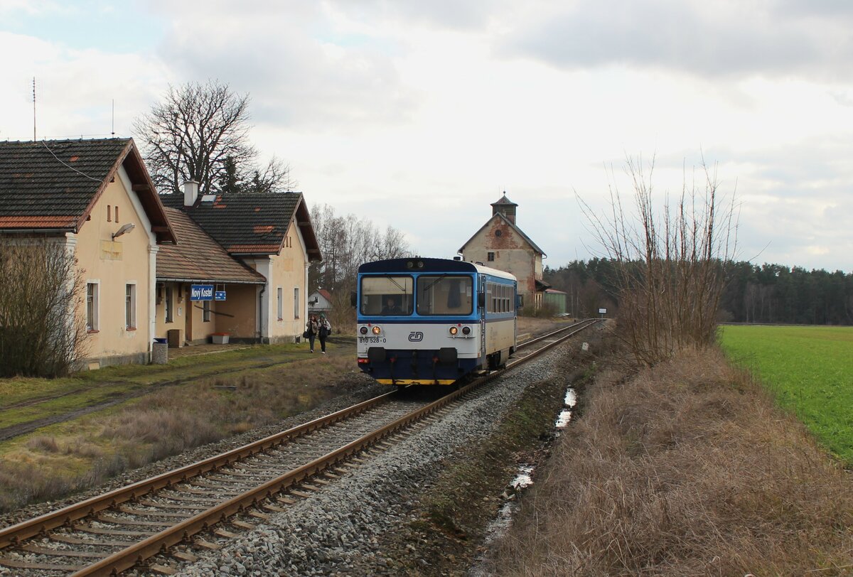 Treffen in Loket. TW 810 666-8 , der zwischen Chodov und Loket pendelt, trifft 642 738 der Erzgebirgsbahn, der als Sonderzug aus Zwickau kam.18.03.2023 14:45 Uhr.