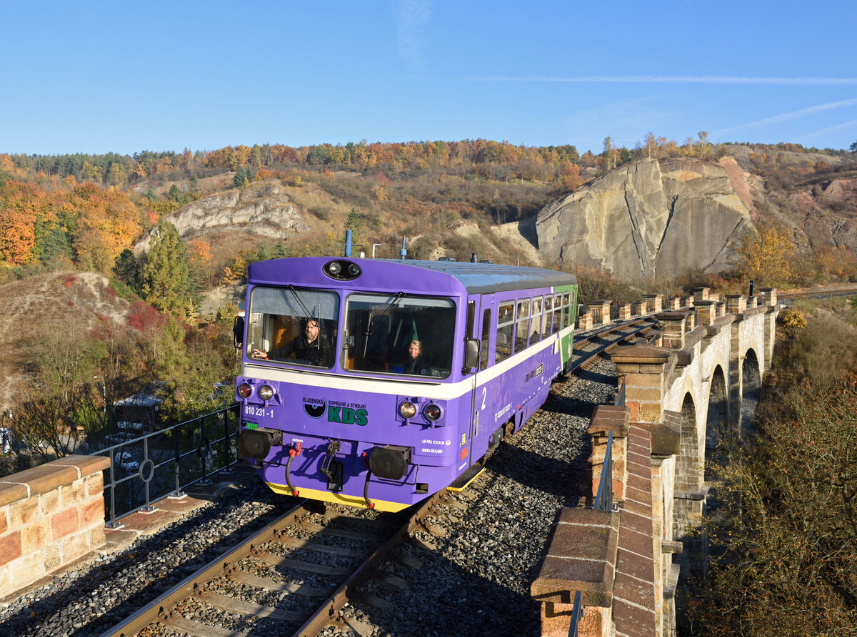 Am frostigen Morgen des 24. Oktober 2021 überquerte der 810 231 als Os 25907 das Severozápadní viadukt am prager Semmering.
