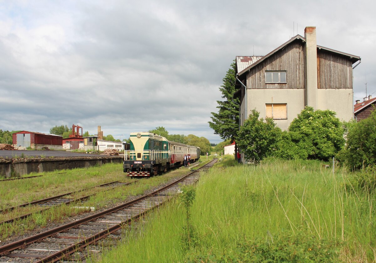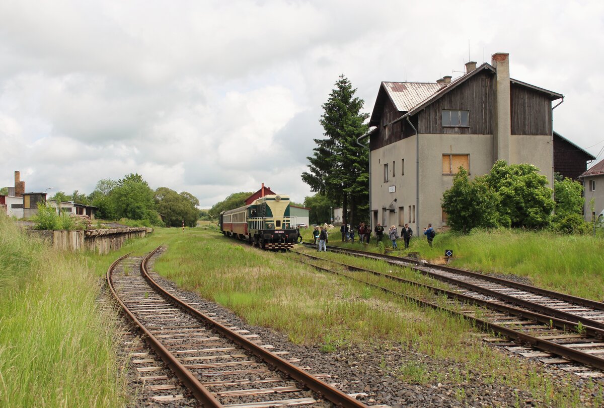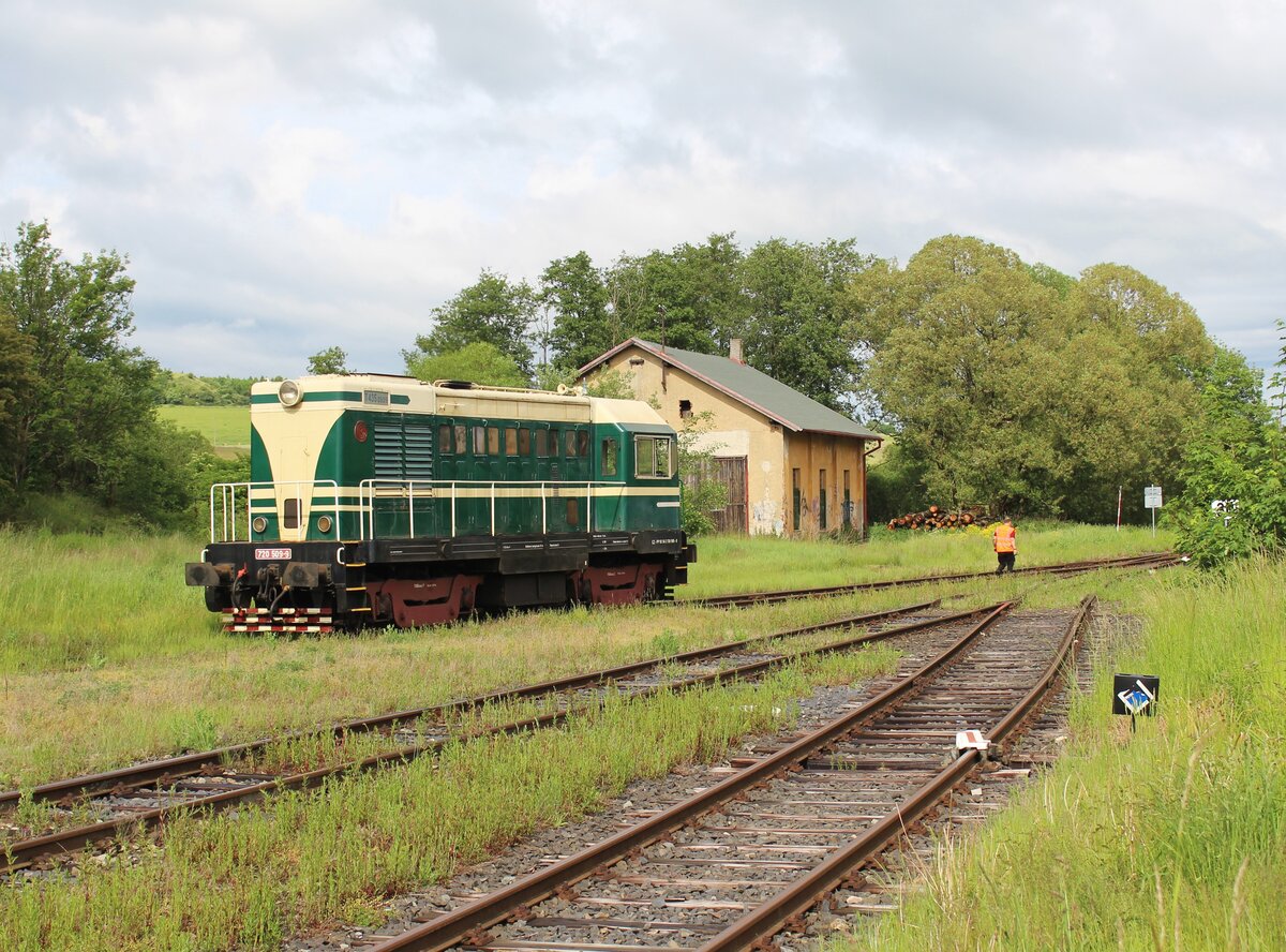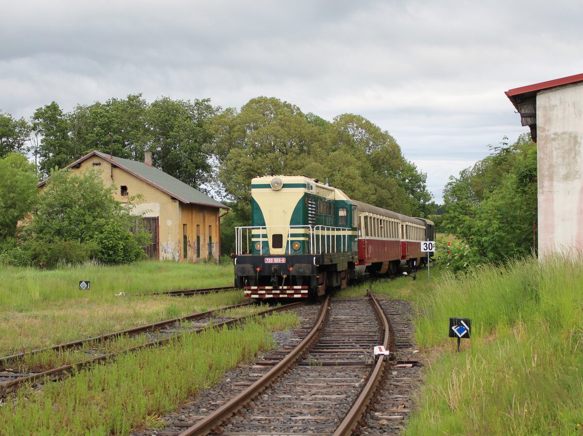 720 509-9 fuhr am 07.06.25 von Rakovnik nach Bochov. Der Grund für meinen Besuch dort war. Auf dem Streckenabschnitt zwischen Protivec und Bochov findet kein planmäßiger Personenverkehr mehr statt. 720 509-9 als Os 93142 ist hier in Čichalov zu sehen. Alexander Hertel