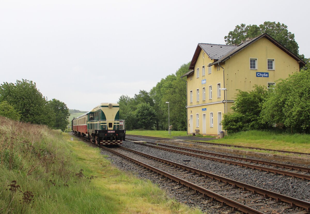 720 509-9 fuhr am 07.06.25 von Rakovnik nach Bochov. Der Grund für meinen Besuch dort war. Auf dem Streckenabschnitt zwischen Protivec und Bochov findet kein planmäßiger Personenverkehr mehr statt. 720 509-9 als Os 93142 ist hier in Chyše zu sehen. Alexander Hertel