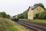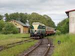 Die T478 2006 (751 236) mit einem Schlafwagen auf dem Weg von Benesov nach Chemnitz Hilbersdorf. Dort fand an dem Wochenende das Heizhausfest statt und die Bardotte war dort eine der Gastloks. Aufgenommen am Bahnhof Kovarska mit Ex-Bahnwärterhäuschen auf der Strecke zwischen Chomutov und Vejpert am 21.08.2025 Andreas Schreiber