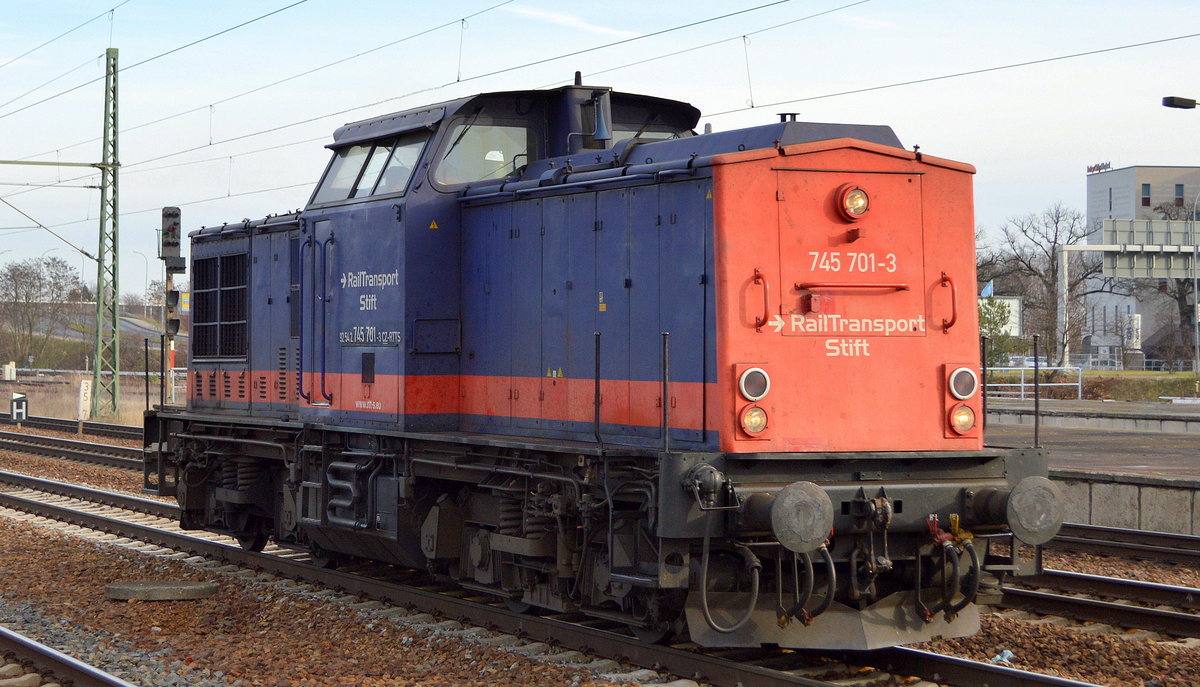 Überraschenderweise kam diese tschechische V 100 der Fa. RailTransport-Stift s.r.o., Šluknov "745 701-3" [NVR-Nummer: 92 54 2745 701-3 CZ-RTTS] durch den Bf.Flughafen Berlin Schönefeld gefahren, 18.01.20 Lothar Stöckmann