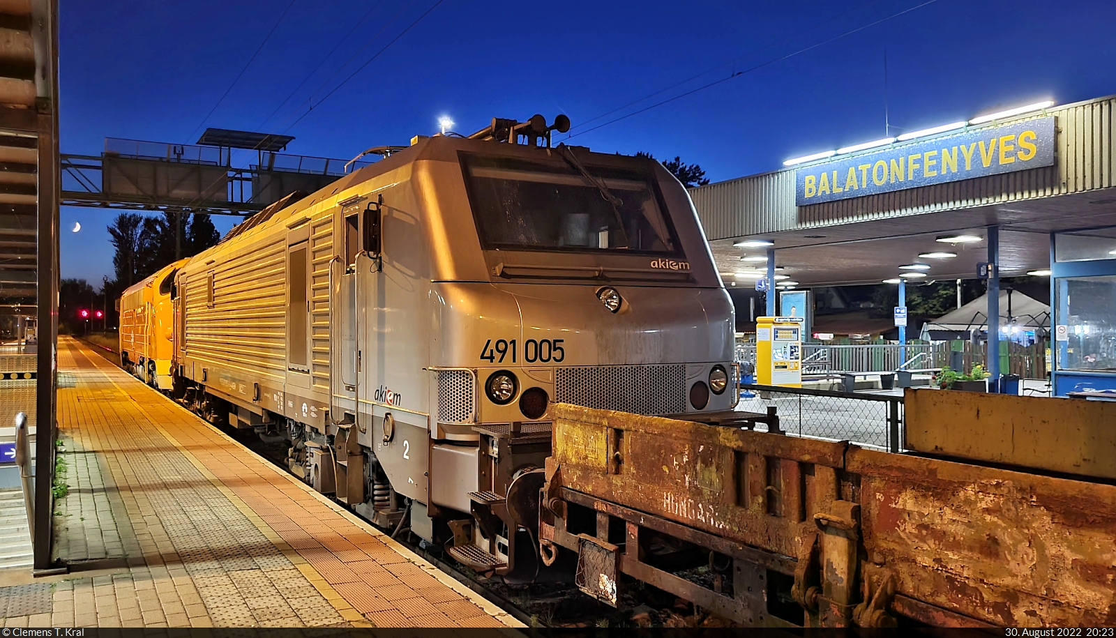 Gezogen von der 618 019-7 (NOHAB M61 019), legt ein kurzer Bauzug einen Betriebshalt im Bahnhof Balatonfenyves (HU) auf Gleis 2 ein. An zweiter Stelle hängt 491 005-9 (91 55 0491 005-9 H-AKIEM | Alstom Prima EL3U/4), eine für Ungarn, Rumänien und Kroatien zugelassene Mehrsystemlok. Das war mir neu, denn normalerweise sieht man diese Maschinen nur in Deutschland und Frankreich.