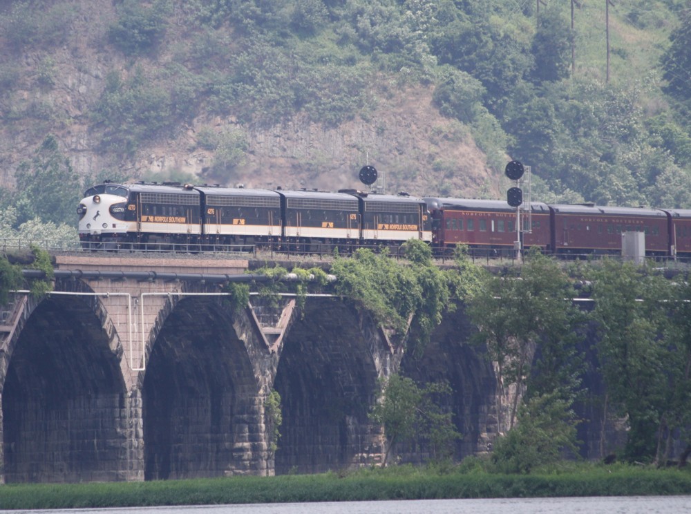 24.7.2012 Rockville Bridge, PA. Norfolk Southern Office Car Special Equipment mit 4 F Units Richtung Pittsburgh. (mehr unter http://www.altoonaworks.info/ocs.html) - Wetter war nicht ideal, aber wann bekommt man so was schon vor die Linse... matthias manske
