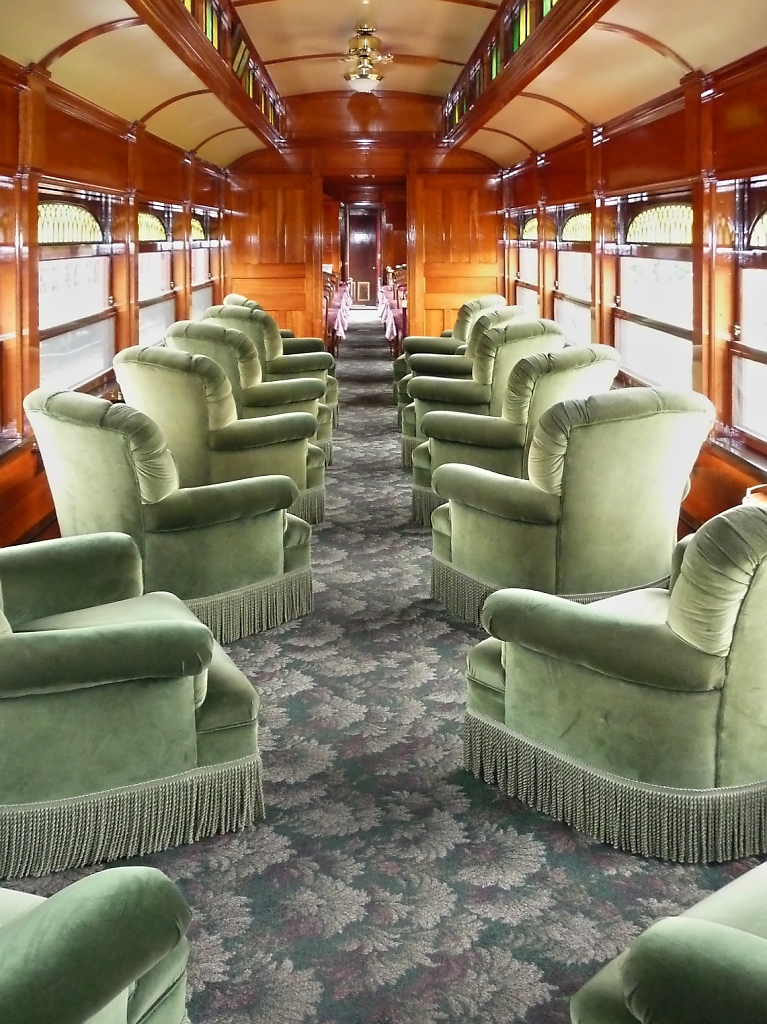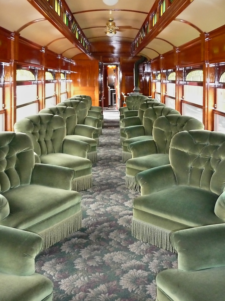 Noch ein Blick zurück auf die Plüschsessel im Salonwagen; auch diese können passend zur Fahrtrichtung gedreht werden (Strasburg, 02.06.09).
