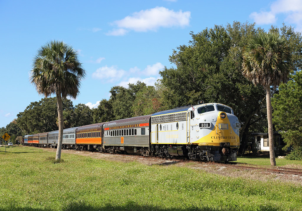 The 1140 Polar Express leaves Mount Dora for Tavares. 800 is the loco on the rear, 23 Nov 2018