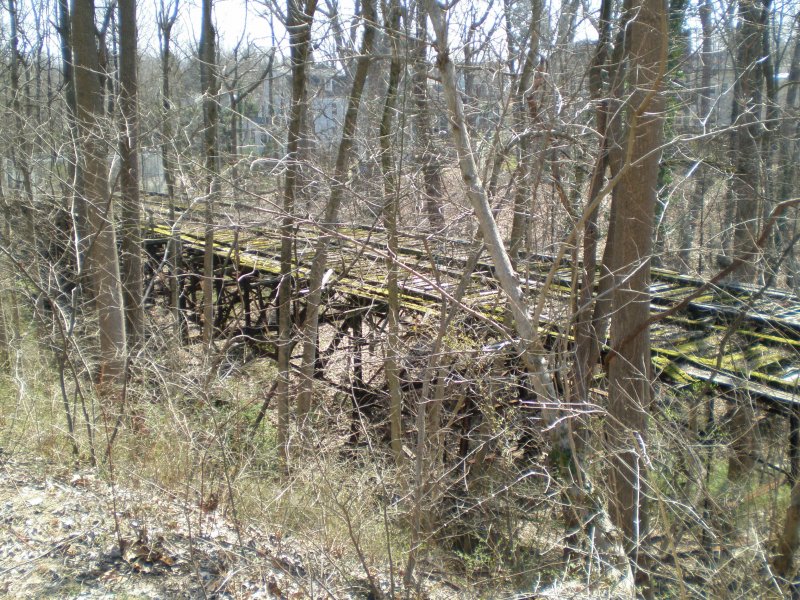 Streckenreste kurz vor der ehemaligen Endstation Cabin John in Maryland. 1960 fuhr hier die letzte Bahn.