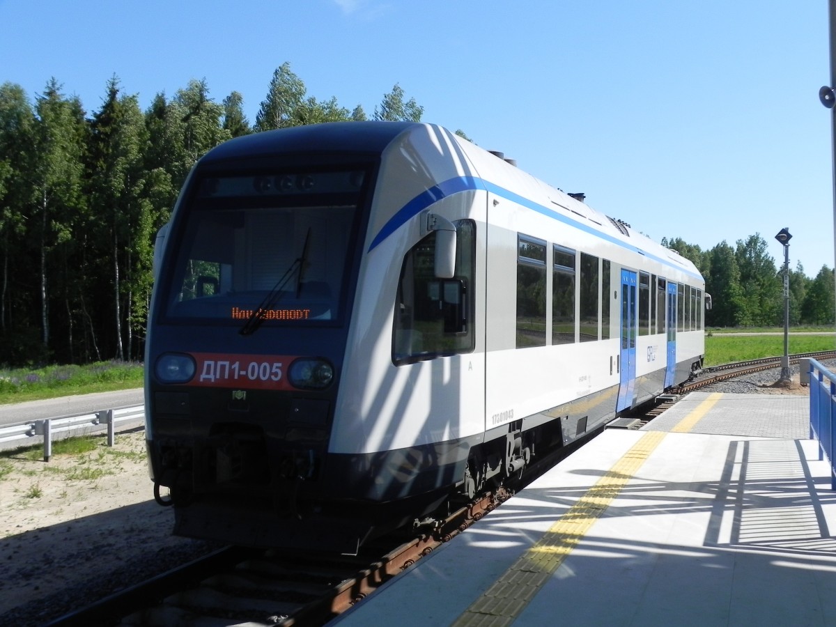 Neuer Zug auf neuer Verbindung. Triebwagen der Baureihe DP1 verbinden momentan 5x täglich den Bahnhof Minsk mit dem Flughafen. Die Fahrt dauert etwa eine Stunde und bringt damit keinen Vorteil gegenüber der Busverbindung, die dazu noch mindestens stündlich verkehrt. Trotzdem war der Triebwagen mit etwa 20 Personen relativ gut besetzt. Hier steht der DP1-005 am 07.06.2015 kurz vor der Abfahrt um 08:43 Uhr in Minsk. Jörg Ohlhaver