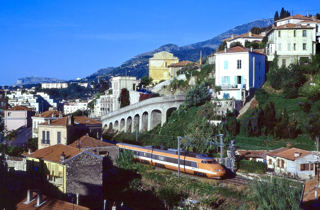 ein wunderschönes Bild, welches auch die Eleganz und gelungene Farbgebung der ersten TGV Züge zeigt.