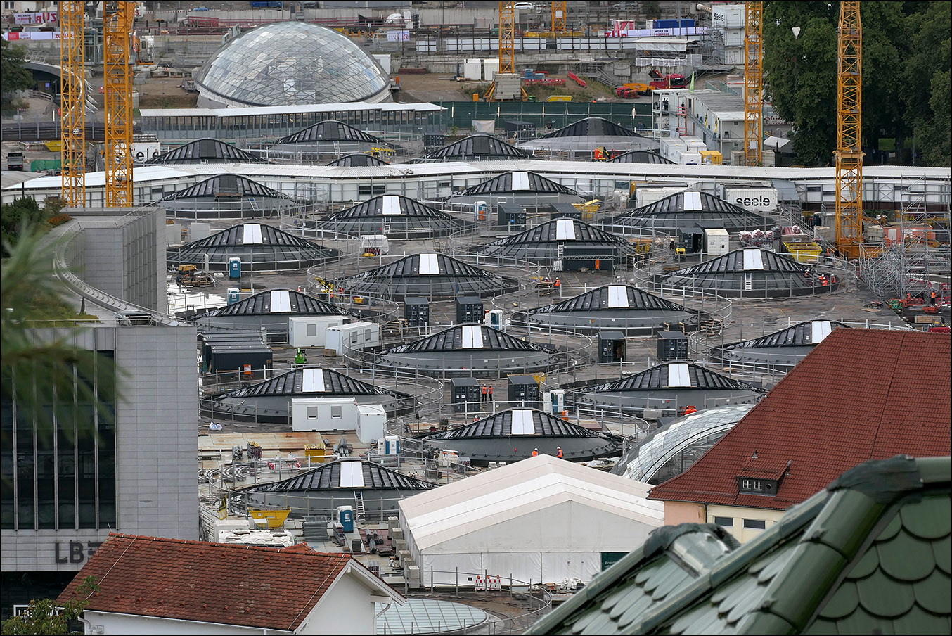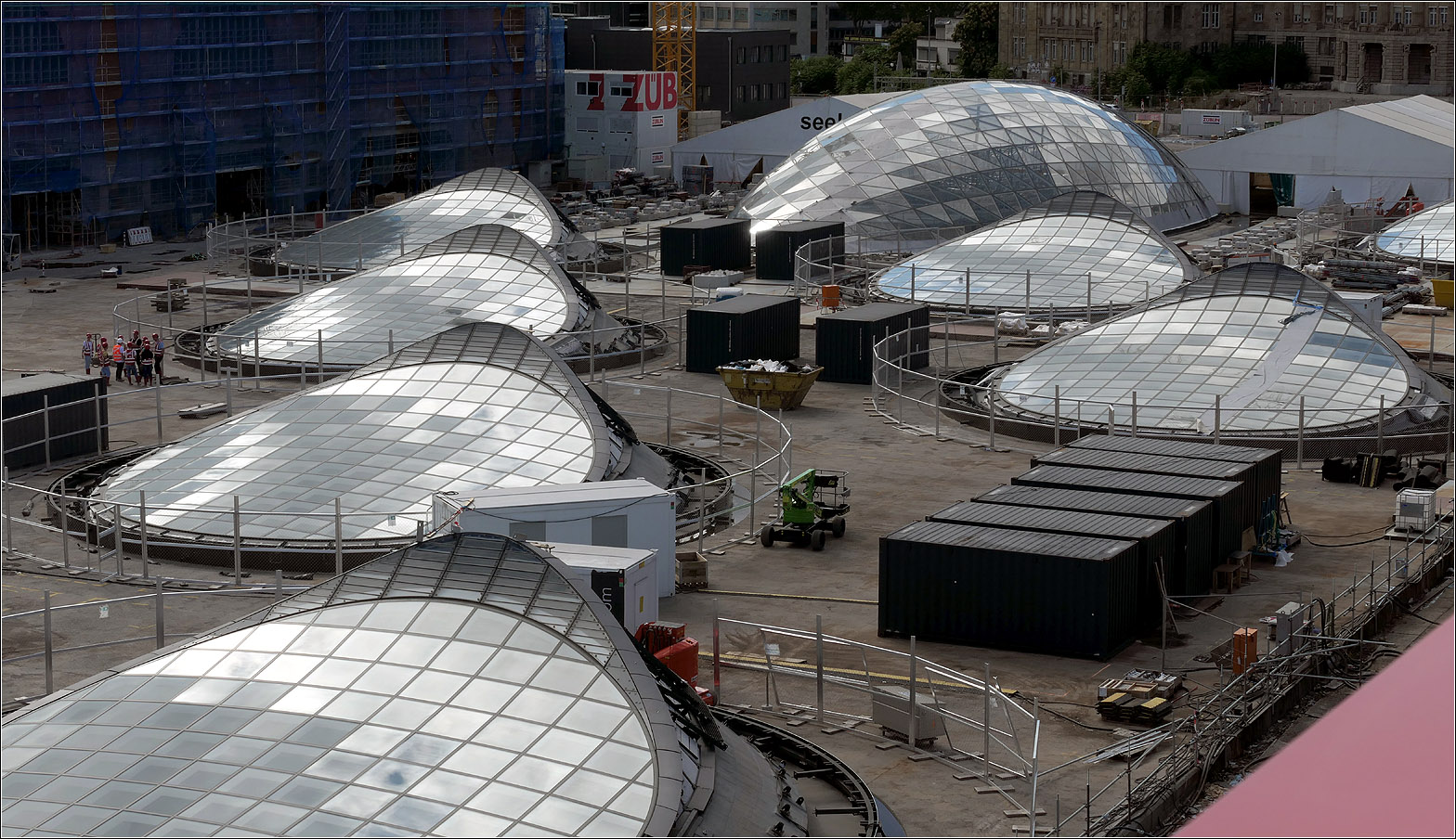 auch wenn es schwer fallen wird, doch an diesen Anblick - wenn alles fertig ist - werden wir uns auch gewöhnen. Schon vom Design und den Architekten sehr gewagt, zumal alles darunter unterirdisch sein wird. Genug Tageslicht wird es definitiv geben. Gewöhnungsbedürftig.