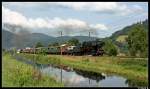 50 2740 mit ihrem PmG Sdz nach Seebrugg bei Haslach am Kanal. Die Güterwagen wird sie in Hausach abhängen. Am Zugschluss hängt E44 1170 für die IG Dreiseenbahn. Aufgenommen am 25.07.10 (zum Bild)