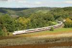 Unbekannte BR 401 als ICE 596 (Stuttgart-Berlin) in der Kurve bei Ölbronn, 27.09.2015. (zum Bild)