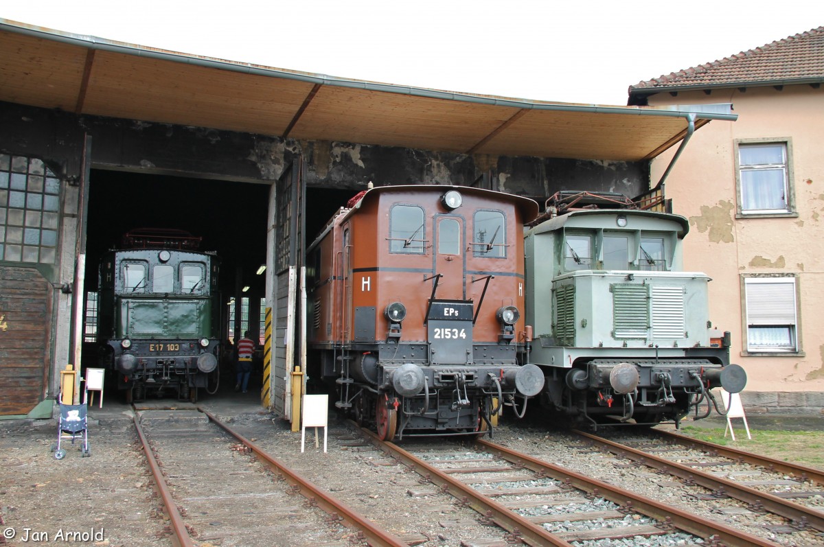 Die Lok in der Mitte ist eine E52 aus den 20er-Jahren, links die E17 war begehbar und ist Baujahr 1929.
