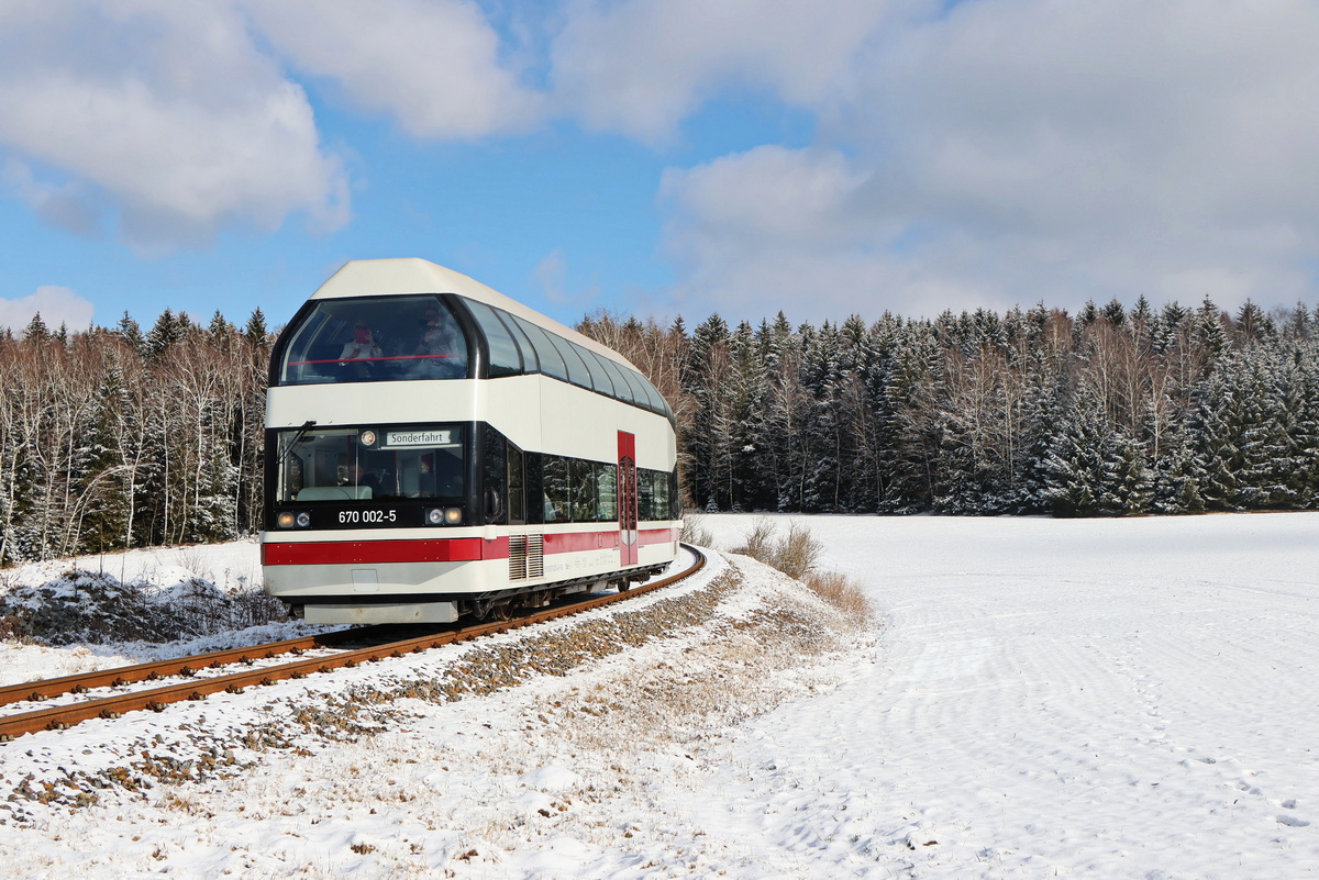 die "IC"-Farben des Schienenbus passen gut in die weiße Umgebung. Da sticht die rote Bauchbinde als Farbtupfer heraus. Schönes Bild!