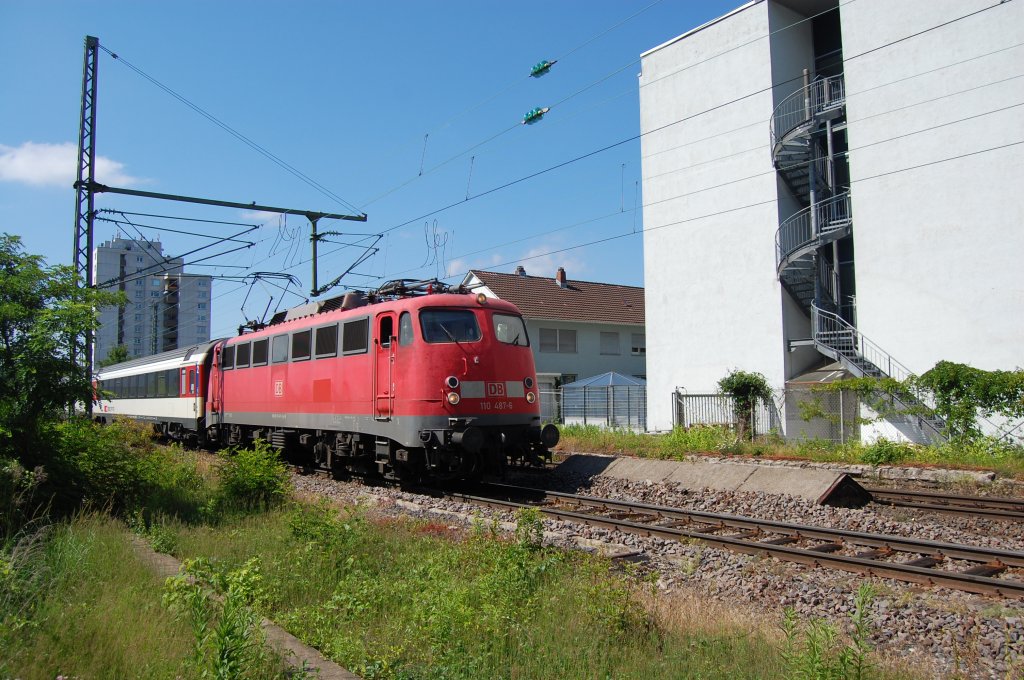 BR 110 487-6 (Maus-Lok) fährt am 17. Juni 2012 durch den alten Westbahnhof in Stuttgart als IC 281 (Zuglauf Stuttgart Hbf - Zürich HB) (voir l'image)