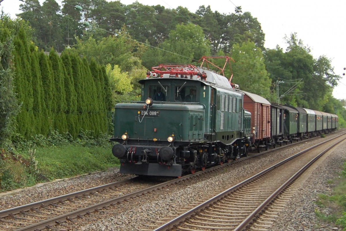 Feuriger Elias mit E94 088 am 1. September 2013 kurz vor dem S-Bahnhof in Rutesheim. (voir l'image)