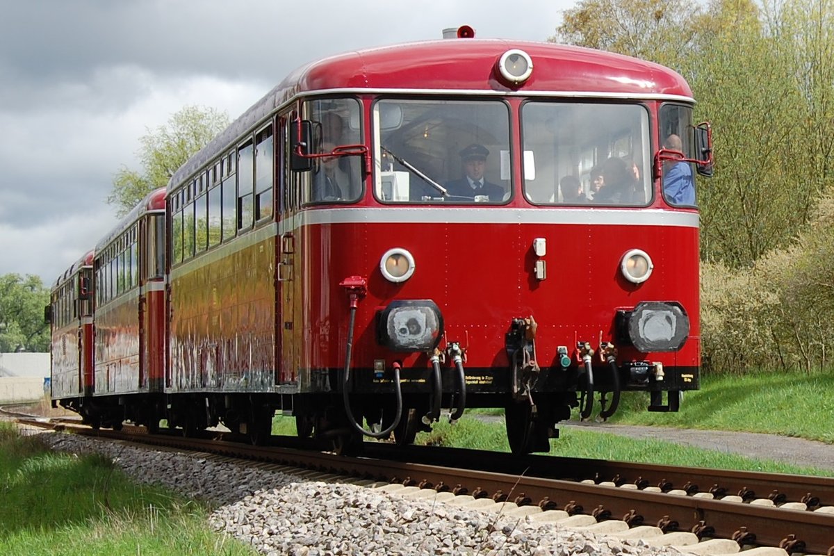Historischer Schienenbus am 17. April 2016 auf der Ammertalbahn in Tübingen West. (voir l'image)