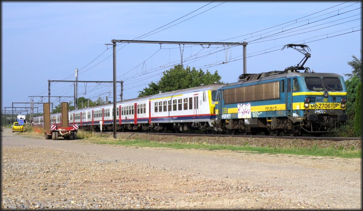 Die 2706 der SNCB/NMBS zieht ihren Personenzug in Richtung Tongeren, hier zu sehen bei Nerem in Belgien am 17.August 2018. (zum Bild)