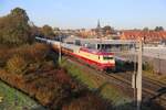 Der AKE Rheingold mit Lok 101001 durchfährt hier am 3.11.2024 um 9.20 Uhr Hasbergen auf dem Weg nach Westerland. (zum Bild)