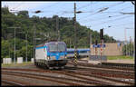 CD Vectron 193687-1 fährt hier am 10.6.2024 um 11.16 Uhr mit dem Krusnohor aus Cheb in den Hauptbahnhof von Usti nad Labem ein. (zum Bild)