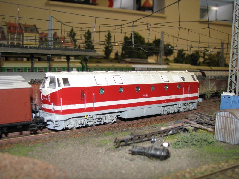 Diesellokomotive BR 219 110-4 "DR" auf der Modellbahn-Anlage des MEC Rostock, 27.12.2009 (zum Bild)