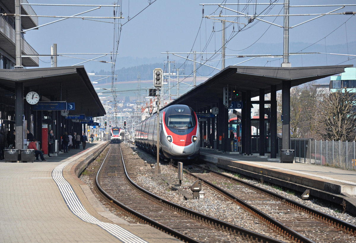 Richtung Gotthard zeigt sich der Bahnhof Zug fast als "Nebenbahn"; das Bild gefällt mir deshalb ausgezeichnet.