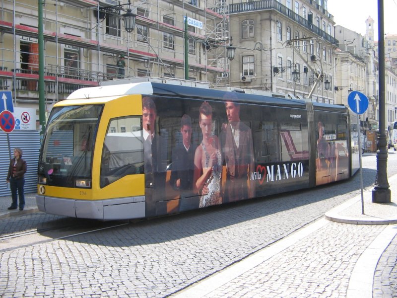 10.04.07,Lissabon,moderne Straßenbahn mit Vollwerbung. (zum Bild)