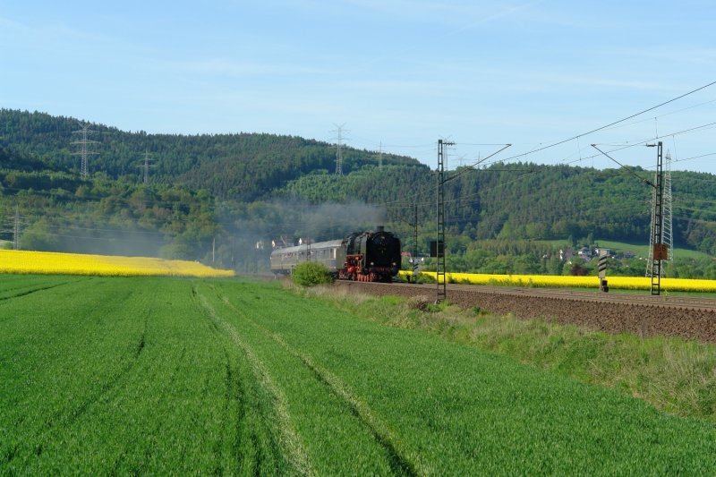 das Bild war eigentlich genauso von mir vorher geplant worden. Ich wollte die Dampflok nicht in den Oberleitungsmast, der rechts steht, fahren lassen. Ich war froh, da der Zug durch eine Verspätung sehr fix unterwegs war, genau zu diesem Zeitpunkt ausgelöst zu haben. Außerdem findest du ein Bild von mir von genau der gleichen Fotostelle hinter Mecklar, wo der Zug näher dran war. Das ist halt reine Geschmackssache :-D.