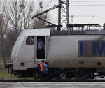 Der Containerzug nach Tschechien auf dem Durchfahrgleis in Dresden Hbf. hat extra zwecks Mitnahme dieser Person einen kurzen Halt eingelegt, fuhr dann sofort weiter.