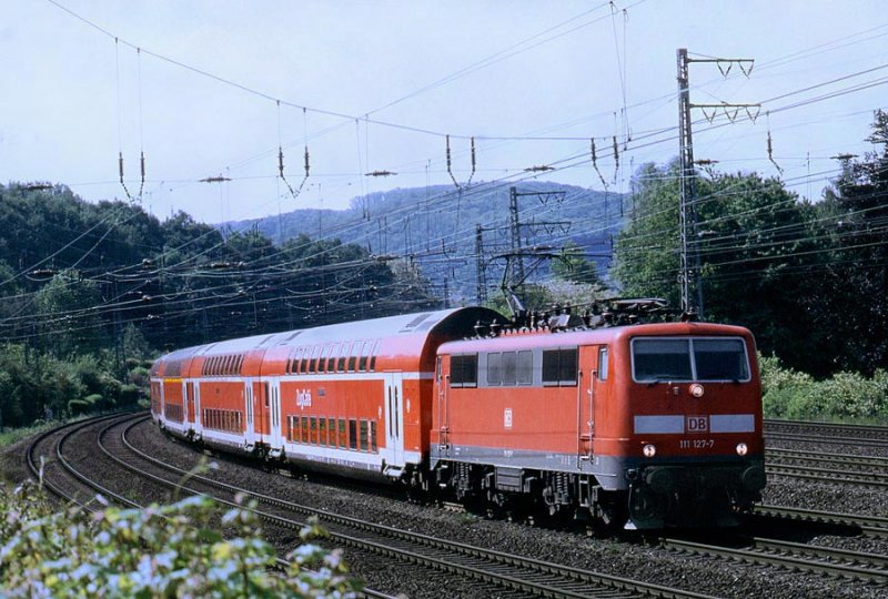 111 127 mit Wendezug, auf dem Wege von Hagen Hbf nach Rheine. Juni 2006, Diascan. (zum Bild)