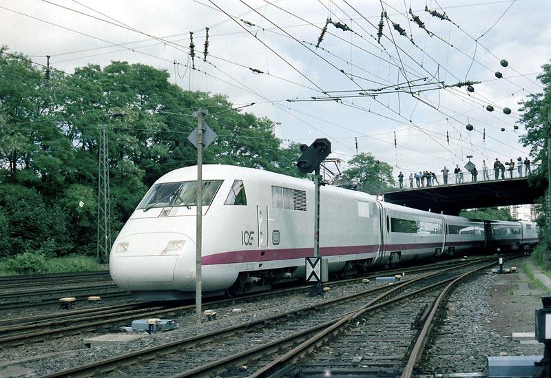 IC-Experimental 1985 in HH-Sternschanze einfahrend. Der ICE erreichte 1988 406km/h (zum Bild)