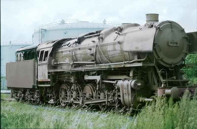Wrack der Drei-Zylinder Lok 043681 am Pier der Erdöl-Raffinerie von BP.in Wilhelmshaven. Aufn.1982 (zum Bild)