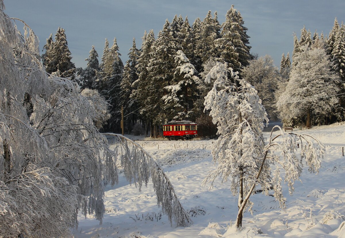 Schön getroffen - man kann sich hier richtig hineinversetzen, wie man entweder die Landschaft aus dem schön warmen Zug heraus bewundert, oder sie bei einer Winterwanderung genießt.