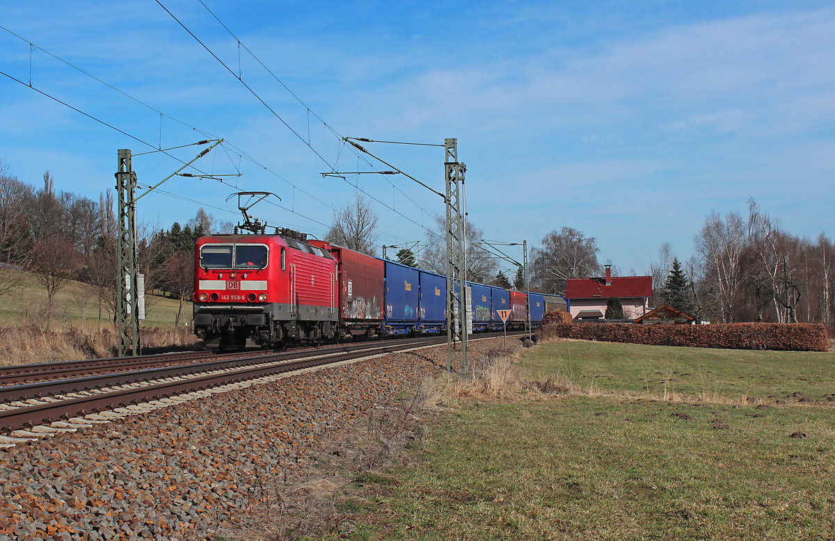 143 558-5 fährt am 04.03.2017 mit dem GA 52811 (Braunschweig Rbf - Mosel) durch den Ortsteil Glauchau Schönbörnchen. (to the image)