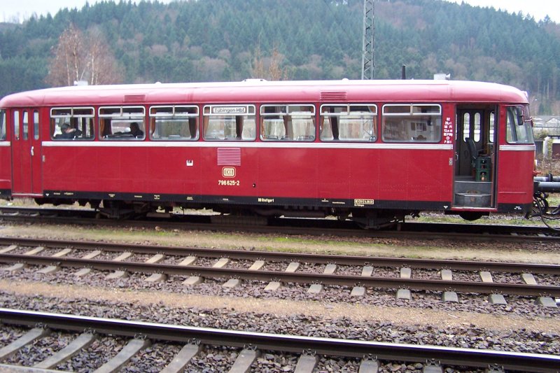 Der Motorwagen in voller Länge im Bahnhof Hausach (zum Bild)