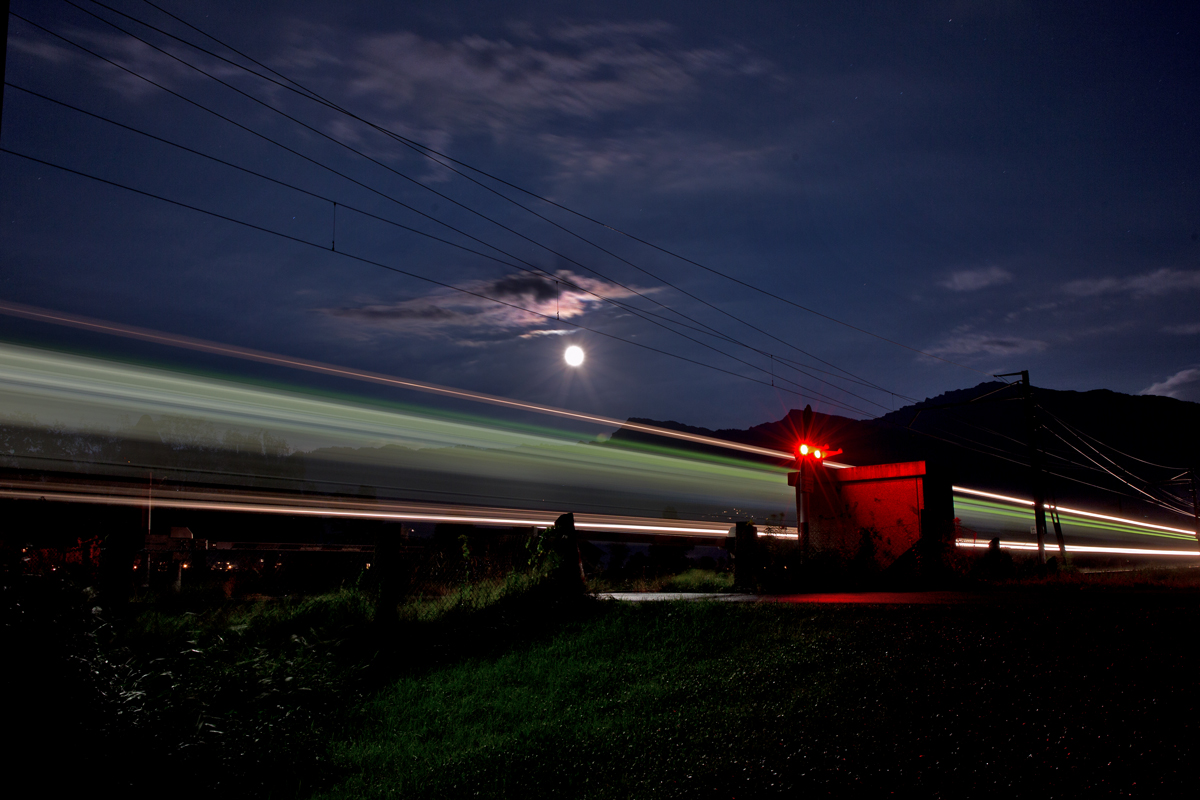 schöne Szene. Perfekt wäre sie für mich, wenn die Verschlußzeit so gewählt worden wäre, dass zwar der Zug als Lichtstreifen zu sehen ist, aber die Wolken nicht so unscharf wären. Wie lauten denn zu dem Bild die EXIF-Daten?