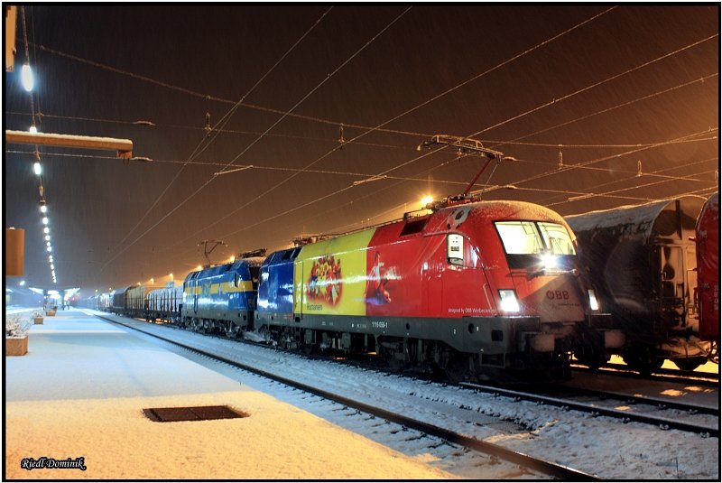 @Florian. Die verschlägt es so schnell nirgends hin, die bleibt auf diesem Zug, den der ist ein internationaler Dauerumlauf Koper-Wien-Koper. Zur Zeit fährt am Slowenischen Netz allerdings noch die SZ und die beiden 1216er warten in Villach. Ab Montag, wenn alles klappt bereits als blaues Tandem zusammen mit Adria Transport 1216 920!