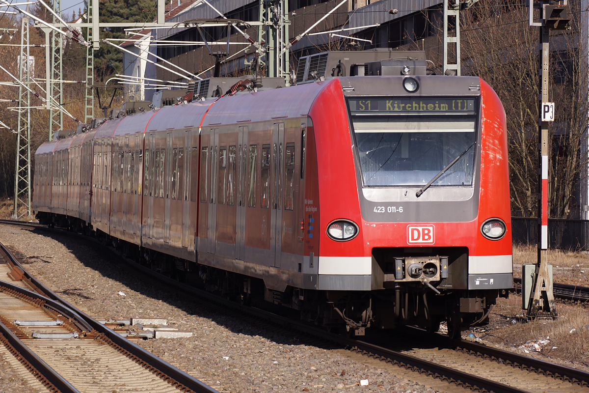 Am 9.3.2014 ist 423 011-6 als S1 auf dem Weg nach Kirchheim. Aufgenommen in Böblingen. (zum Bild)