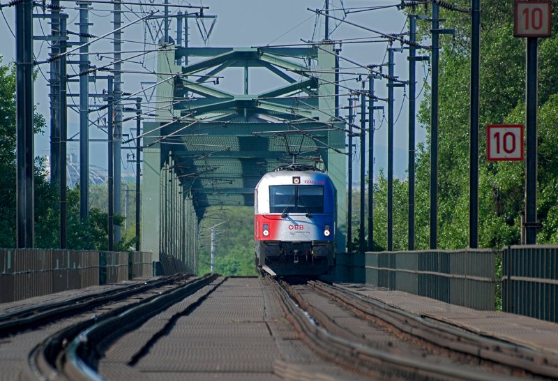 Der moderne Zug bringt die Dynamik ins Bild, während die Telegrafenmasten die Romatik dieser Strecke unterstreichen.