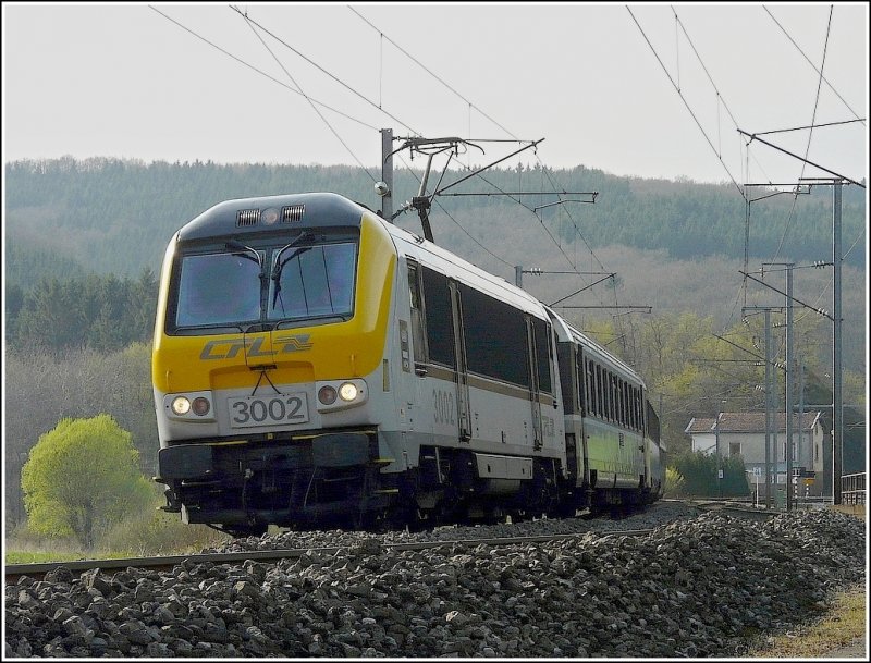 Hier stimmt wirklich alles, ein Traumfoto. Auch Klasse, wie die 3002 mitsamt Bugwelle durch den Schotter plügt. Gehört das nicht in Schiffbilder.de? ;-)