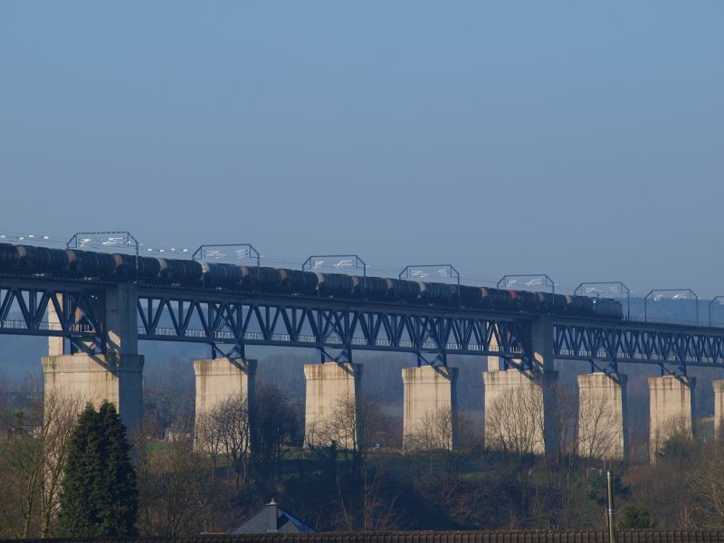 Das Viadukt von Moresnet auf der Montzenlinie. DerZug fährt richtung Montzen. (zum Bild)
