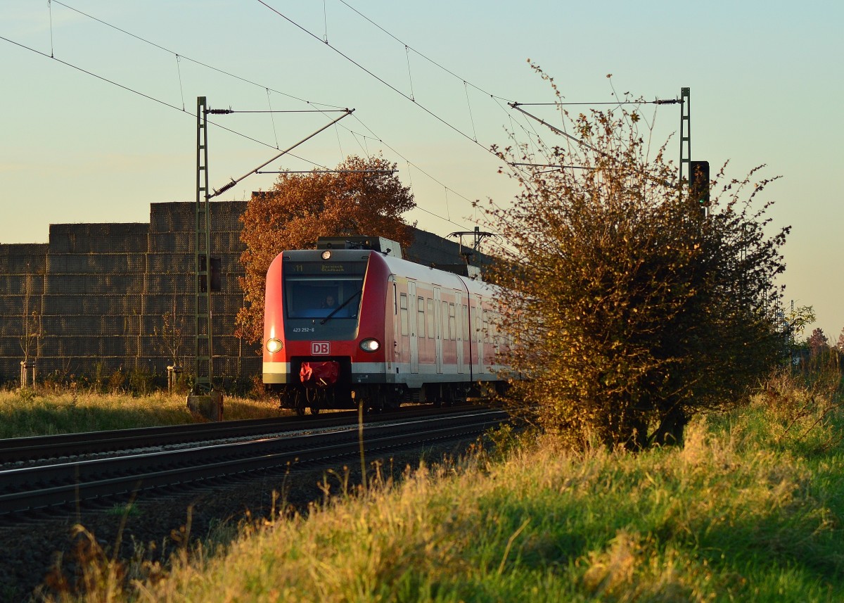 Was ist den da los hinterm Busch? In diesm Fall ist es der 423 252-6 der einen S11 nach Bergisch Gladbach zieht. Hier ist der Zug bei Allerheiligen. 21.11.2014 (zum Bild)