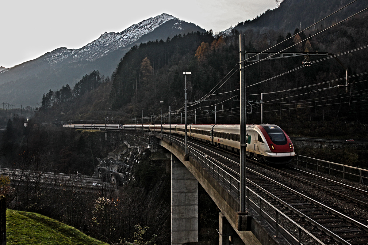 Dieser ETR 470 hat augenscheinlich schon ein paar Ersatzteile in Anspruch genommen, troztdem macht er ein schönes Bild und das Foto mit der Rigi im Hintergrund gefälllt mir ausgezeichnet.