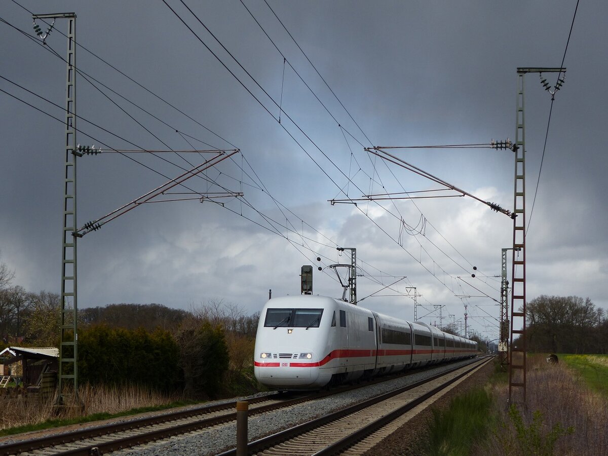 401 078 (BREMERHAVEN) als ICE 1103 Norddeich=Mole - Stuttgart beim ehemaligen Bk. Deves bei Salzbergen, 09.04.2022 (zum Bild)