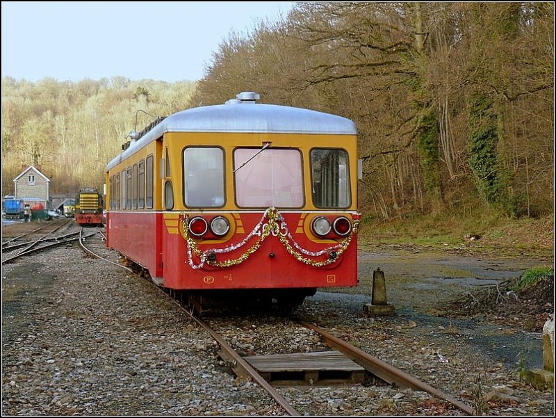 Blick auf die wunderschöne Museumsstrecke "Ligne du Bocq" und den Triebwagen N° 4605 aufgenommen im Bahnhof von Spontin am 07.12.08. (Jeanny) (naar de afbeelding)